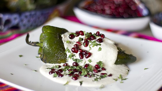 11). To serve, cover the stuffed chiles with the walnut sauce and sprinkle with pomegranate arils and chopped fresh parsley or cilantro.